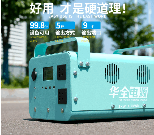 舉例來(lái)說(shuō),如華全HQDY-1000-A戶外電源,額定功率1000W,電量為1200Wh(≈1.2度電),而1度電可以讓電動(dòng)汽車跑5~8公里,這個(gè)距離足以應(yīng)付很多事了。