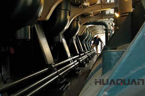 這是一臺(tái)八缸雙向兩沖程發(fā)動(dòng)機(jī)。這里的“雙向”,是指它的活塞處于頂部和底部位置時(shí)都會(huì)點(diǎn)火,不過(guò),此種技術(shù)現(xiàn)在已不使用了。在身高上,該臺(tái)大機(jī)器與瓦錫蘭制造的世界上的船用柴油機(jī)相差無(wú)幾,都相當(dāng)于4層樓高,但它的體型與后者相比要“瘦弱”一些。即使這樣,它的龐大體型仍然會(huì)讓你感到驚訝。據(jù)說(shuō),“二戰(zhàn)”期間電站工人組成的抵抗組織還曾借助它來(lái)藏匿武器呢。