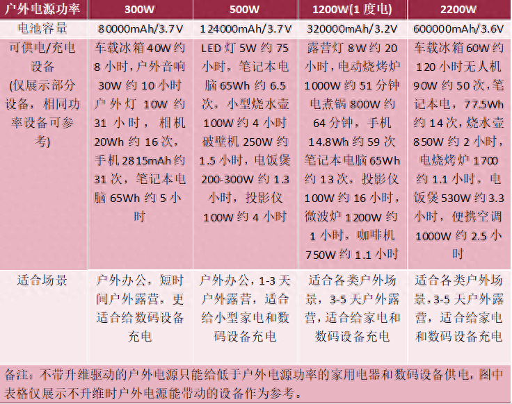 戶外電源,選1度電的容量夠用嗎?一張表給你答案