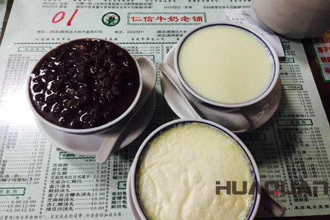 廣東順德是雙皮奶的發(fā)源地。創(chuàng)始于清朝末年的仁信老鋪傳承著這門(mén)手藝。奶皮厚重粘牙又不失韌性, 奶凍幼滑入口即溶,紅豆沙也是自家熬制,絕非一般紅豆罐頭可比,清淡的豆沙配上甜美的雙皮奶,絕妙!