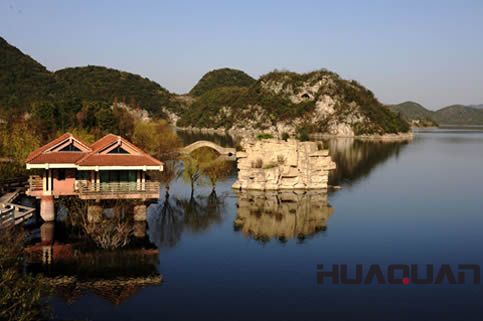 煙波浩渺的百花湖中分布著大小島嶼100多個,遠眺之下,還有幾分江南水鄉(xiāng)的韻味。每逢春天,湖上諸島便會百花盛開,姹紫嫣紅,一片生機勃勃,故而得名“百花”湖。整個百花湖景區(qū)包括中湖、南湖和北湖三部分。由于百花湖為“河湖相連”,上游和下游都是狹長的河谷。尤其是它的上游河段,兩岸青山比肩而對,形成了的一線天。目前,這里已開發(fā)出松林遠眺、雙猴守園、百花雙峽、群峰疊翠、金蟾戲水、孤峰獨秀等數(shù)十個景點。