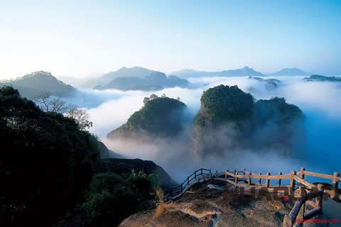 事實上,我們所說的武夷山風景區(qū),一般是指位于武夷山市區(qū)西南的小武夷山,它方圓百里,自成一勝,向稱“福建 名山”。武夷山風景區(qū)以丹霞地貌為特色,有“三三、六六”之勝。三三九曲溪,全長9.5公里,溪水澄碧清澈,千折縈回,山挾水轉(zhuǎn),水繞山行,形成了“曲曲山回轉(zhuǎn),峰峰水抱流”的奇觀。