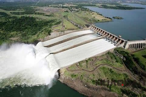 伊泰普大壩建在流經(jīng)巴西和巴拉圭兩國(guó)交界的巴拉那河上,全長(zhǎng)7744米,高196米。自上世紀(jì)70年代兩次電力能源危機(jī)后,巴西政府決定同巴拉圭政府聯(lián)合建造當(dāng)時(shí)世界上的水電站。大壩于1975年10月開(kāi)始建造,直到1982年才竣工,共耗資200億美元。大壩壩后的水庫(kù)沿河延伸達(dá)161千米,形成深250米、面積達(dá)1350平方公里、總蓄水量為290億立方米的人工湖。自1990年改進(jìn)以后,伊泰普水電站18臺(tái)水輪機(jī)組發(fā)電量高達(dá)1260萬(wàn)千瓦。