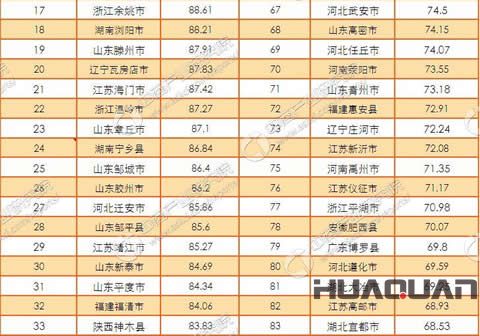 與以往相類似,在2016中國縣域綜合競爭力百強排行榜中,地處東部沿海的江蘇、浙江、山東依舊保持優勢,占據了百強榜的“半壁江山”。江蘇歷來是上榜大戶,除了前四強的席位被江蘇省牢牢占據,一共有22個江蘇縣市進入百強榜單,浙江則有13個縣市入列。而華全動力所在的山東省一共有20個縣市上榜,其中,即墨市排名 靠前,全國第12位;青島、煙臺、濰坊各有4個縣市上榜,占據了全省(20個)的六成席位。