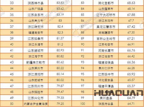 近日,中國城市競爭力研究會在香港發布了2016中國縣域綜合競爭力百強排行榜,進入2016百強榜前十名的分別是江蘇昆山市、江蘇江陰市、江蘇張家港市、江蘇常熟市、福建晉江市、江蘇宜興市、浙江慈溪市、江蘇太倉市、浙江義烏市和內蒙古準格爾旗。值得關注的是前十強中,江蘇一省獨占六席,浙江則占兩席……小編華全動力也對這份榜單及時進行了關注和分析。