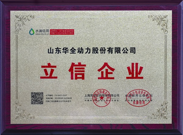 榮譽的獲得不僅是對華全動力綜合實力的肯定,更是對其誠信經(jīng)營的見證,同時也為公司未來的生產(chǎn)經(jīng)營提供了更大的助力。
