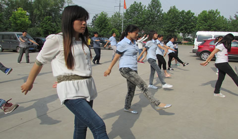 “這么多人一起做廣播體操,可不多見呀!”來辦事的李女士一進公司大門,就看到了這令她驚奇又備感親切的一幕。伴著那悠揚雄壯的音樂,幾十名華全員工齊刷刷聚集在樓前廣場,統(tǒng)一的著裝、標(biāo)準(zhǔn)的動作、優(yōu)雅的表情、自信的姿態(tài),在綠樹紅花的映襯下顯得如此婀娜而美好。尤其是節(jié)奏歡快時,“啪啪”的擊掌聲音聽起來很是響亮、悅耳。